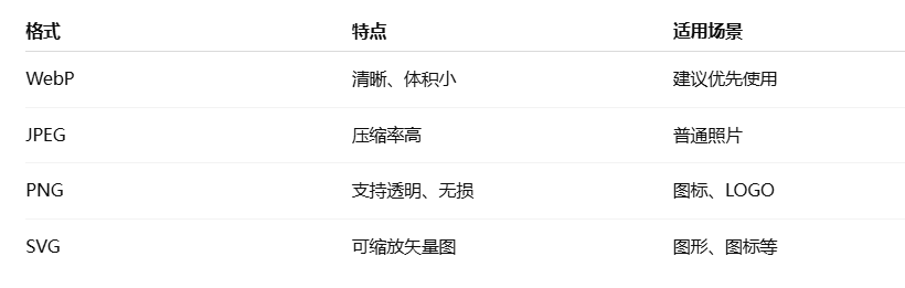 ✅ 推荐使用WebP,兼顾画质和加载速度。