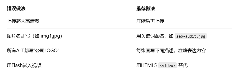 导读:图片和多媒体让网站更生动,但如果不注意优化,可能会拖慢加载速度、影响用户体验,甚至拉低SEO排名。一、为什么图片优化很重要?影响加载速度:大图未压缩,会拖慢网站打开时间,影响排名。有利搜索引擎识别内容:搜索引擎无法“看图”,需要通过ALT文字、文件名等判断内容。提升可访问性:ALT属性能帮助视觉障碍用户理解图片内容。带来额外流量:优化得当的图片有机会