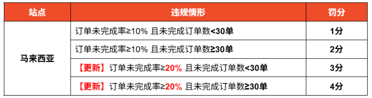 3月18日消息,Shopee马来西亚站宣布,为持续提升平台履约质量,将于北京时间2026年4月6日起,调整订单未完成率(NFR)的罚分阈值。具体调整如下:原有10%和60%的两档罚分触发阈值,将调整为更为严格的10%和20%。这意味着卖家的订单履约表现将面临更高的要求,一旦订单未完成率超过20%,即会触发相应的店铺罚分。首批依据新标准产生的罚分预计将于2026年4月13日生效。平台建议卖家密切关注店铺的订单履约情况,及时处理订单,以避免因罚分影响店铺的正常运营。