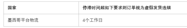 针对平台官方物流订单按照国家,违规标准如下:
