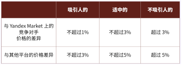 为评估吸引力,Yandex Market 会将您商品的价格与折扣一起,与不同平台上的竞争对手价格进行比较——同时考虑他们可能提供的折扣。价格差异越大,吸引力越低: