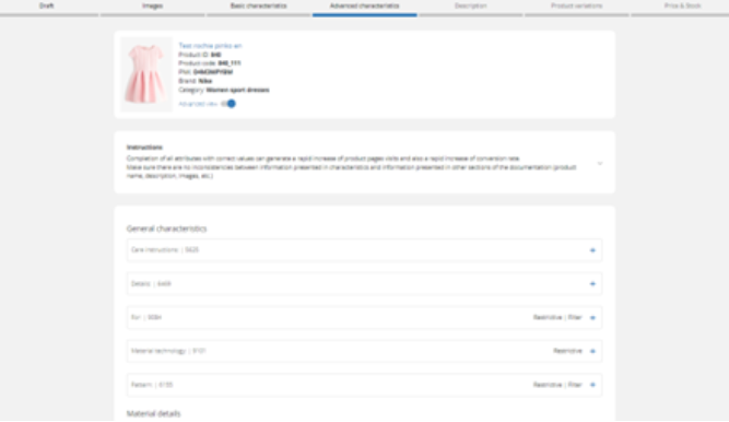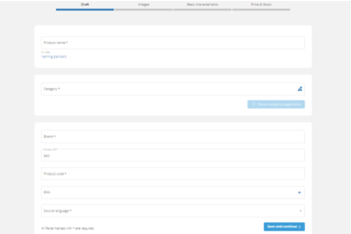 💡填写完前三个步骤(草稿、图片、基本特征)后,即视为您已创建了一个可以在平台上进行验证的产品草稿。