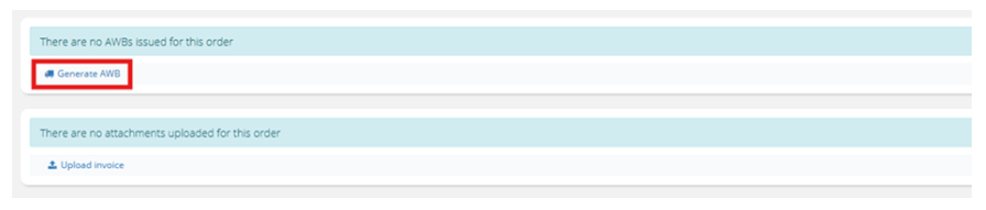 从控制面板访问 “订单”菜单,编辑要完成的订单。转到 “空运单”部分,然后单击“ 生成空运单”。
