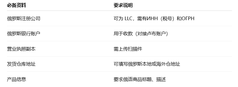 如果你拥有俄方资源或在俄罗斯有团队,可使用以下资料直接入驻: