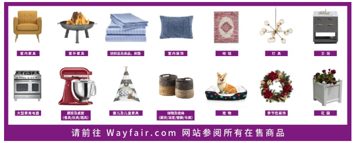 我们售卖品类高达50种,除了传统大件家具产品外,Wayfair还有更多热销品类值得卖家加入。包括家用装饰品、卫浴、家电、家用纺织品、厨具、建材、户外用品等等。具体品类欢迎卖家移步我们官网了解,也欢迎卖家关注我们官方微信公众号,我们将会持续发布最新资讯包括品类介绍。