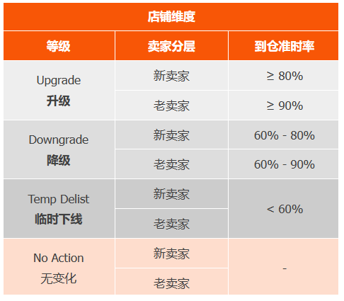 准时到仓率:新卖家 ≥ 80 % ; 老卖家 ≥ 90 %
