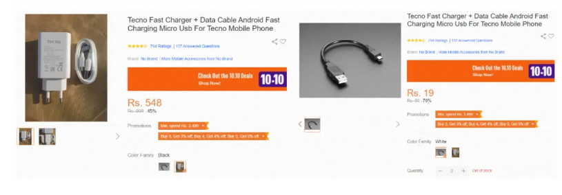 图示中的充电头套装和单一充电线作为变量设置,单独充电线的价格明显地域充电器套装