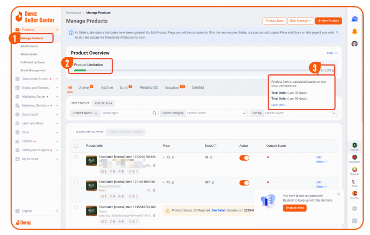 Daraz如何查看商品数量发布状态?